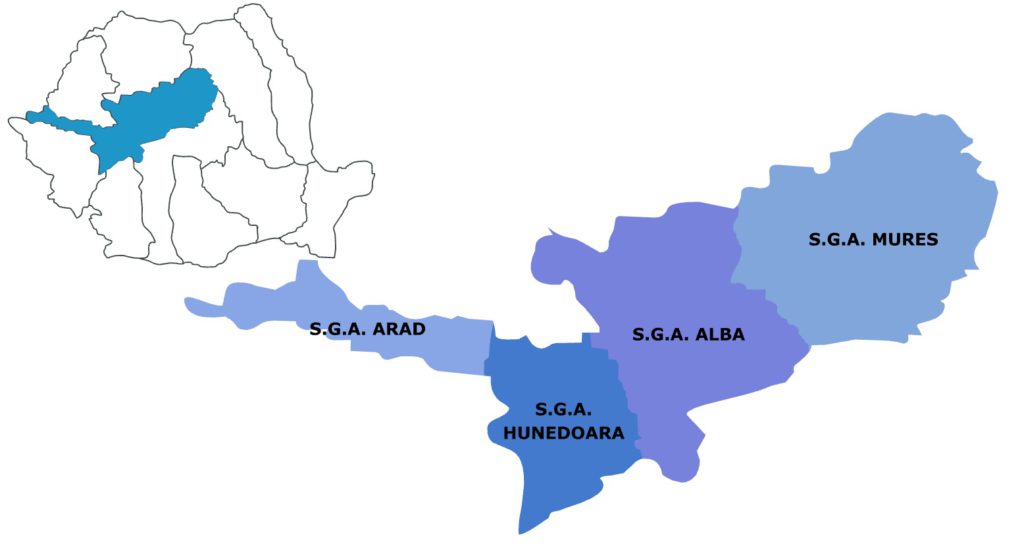 Este organizată să funcţioneze cu patru subunităţi teritoriale localizate în: Târgu-Mures, Alba-Iulia, Deva şi Arad, desfasurându-şi activitatea pe teritoriul a nouă judeţe.
